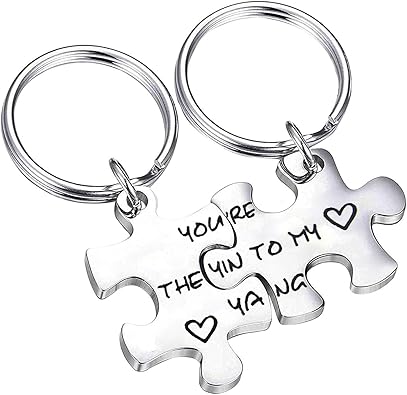 Amazon Com Feelmem Couples Puzzle Keychain You Are The Yin To My Yang Set Of Two Wedding Anniversary Valentine S Day Boyfriend Gift Girlfriend Gift Silver Clothing