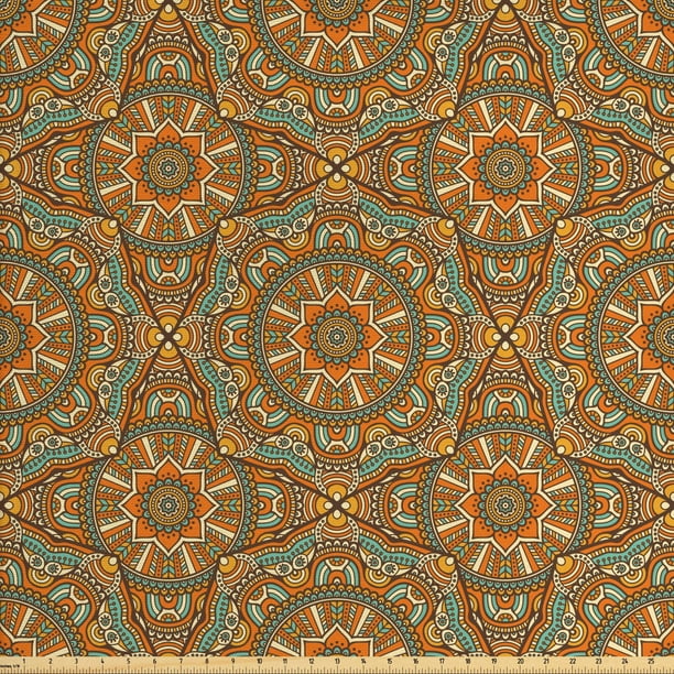 Traditional Fabric By The Yard Bohemian Moroccan Star With Ornamental Scroll Lines Curves Vintage Illustration Decorative Fabric For Upholstery And Home Accents By Ambesonne Walmart Com Walmart Com