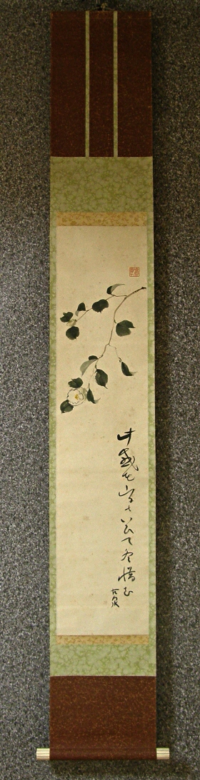 Sp 40130 White Camellia Haiku Poem Japanese Kakemono Scroll Drawn In 1942