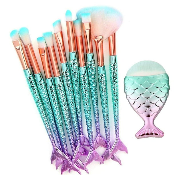 Mermaid Makeup Brushes 11 Pieces Mermaid Brushes Mermaid Makeup Brush Set Professional Foundation Concealer Cosmetics Walmart Com Walmart Com